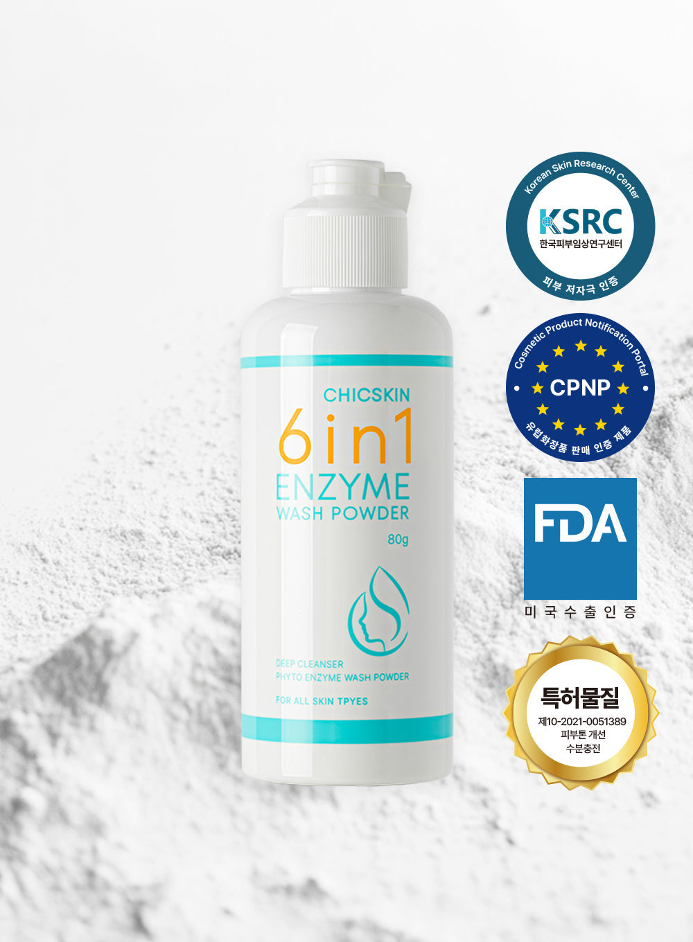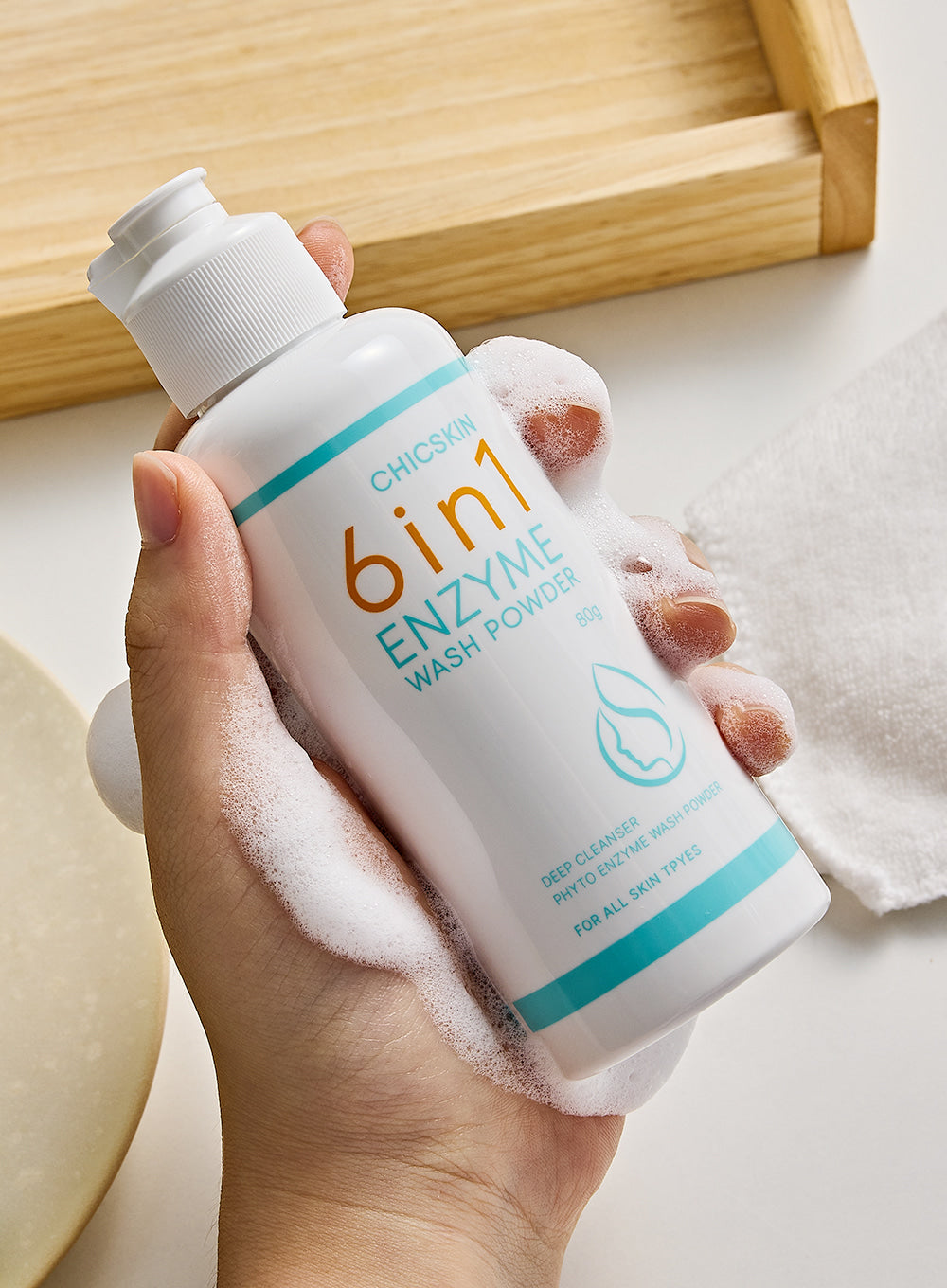 entle yet powerful, the CHICSKIN 6-in-1 Enzyme Wash Powder is a multi-functional cleanser that transforms your skincare routine. This innovative powder activates with water to create a soft, foamy lather that deeply cleanses, exfoliates, and brightens without stripping your skin.